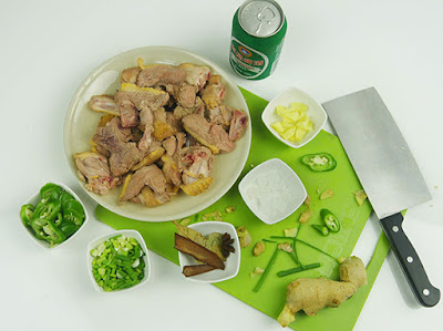 [font=宋体] 主料:购买半只鸭子,约1000千克,斩块洗净。鸭肉不仅含有丰富的蛋白质,而且容易消化,加入啤酒,提升了鸭肉的美味,还增加了营养价值。[/font]