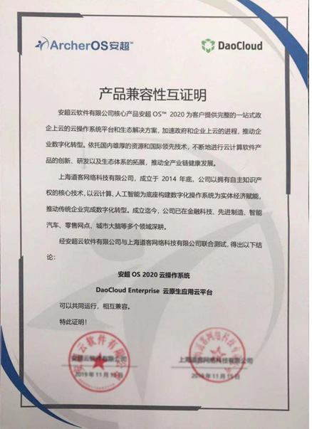 日前,华云数据推出的国产通用型云操作系统安超OS2020与DaoCloudEnterprise云原生应用云平台完成兼容性互认证。并在此基础上,双方展开进一步合作,联合打造“华云-DaoCloud可信云容器联合解决方案”,为用户提供行业前沿的技术创新能力,实现更灵活、更高效、更丰富的业务上云。 此次兼容性互认证经华云数据与DaoCloud联合测试得出:双方产品相互兼容,系统功能运行稳定,满足用户更多的上云需求,双方后续还将继续扩大技术兼容认证范围,有力推动新兴企业和传统企业实现数字化转型。
