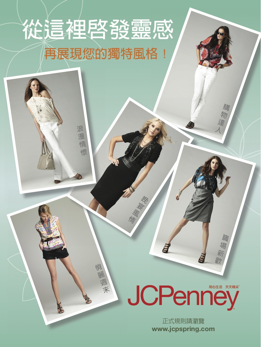 JCPenney 春嬌百媚大賽! 感受春天的流行風尚,J.C.Penney Company, Inc. (NYSE: JCP) 特別推出造型比賽,讓大家發揮穿搭的才華。從3月10日,全美各地有興趣的人士可上網www.jcpspring.com 報名,入選者有機會贏得飛往加州洛杉磯、聖荷西或紐約的機票,並接受中文電視節目採訪及獲得JCPenney 一張$500 禮物卡 。 JCPenney 春嬌百媚大賽讓大家發揮創意打扮自己,穿出自己的個性和時尚感。條件是: 身上的搭配必須有一樣服裝和一樣配件是來自JCPenney。不過不用擔心, 因為JCPenney今年全新的設計師春裝系列已經登場,色彩明亮、圖案豐富,正是聰明的購物者最佳去處。 有意展現穿搭造型才華的人可以將照片上傳到比賽網站,同時也可以看到比賽情形! 由專家組成的評審小組,將根據創意原創性和最佳運用JCPenney商品為準則進行評。 消費者也可上網www.jcpspring.com瀏覽,了解本季流行趨勢和尋找裝扮創意靈感。“春嬌百媚”大賽到3月28日截止,預料競爭會很激烈,精彩可期! JCPenney”春嬌百媚大賽“是2010年春季行銷活動“新的造型,新的一天,誰讓我驚艷?” 中專為華裔社區設計的比賽,其首要目標是讓顧客在該公司齊全多樣的商品組合中,發現全新高品位的時尚。過去幾年,JCPenney大力提升商品風格,給消費者帶來比以往更美好更豐富的購物體驗。 最近加入JCPenney行列的熱門設計師品牌有Allen Schwartz 、 Mary Kate Olsen and Ashley Olsen 以及 Cindy Crawford, 快速熱賣的少女裝品牌City Streets 和 Decree,加上原有強大陣容的自有品牌如Worthington 、 a.n.a 、 Stafford、Linden Street 和 Ambrielle,一起打造JCPenney 成為當今選購服飾和家居必備品的不二去處。在Sephora化妝品零售店進駐JCPenney的美妝保養部門,還有未來Liz Claiborne 和極具現代都市感的名牌MNG by Mango加入後,顧客的選擇會更多,也更有充分理由前往JCPenney 購物。 欲知更多詳情請聯絡: