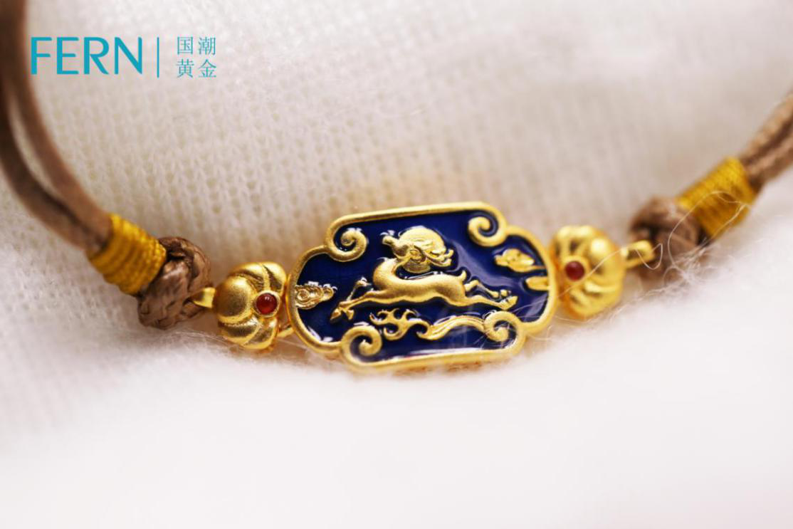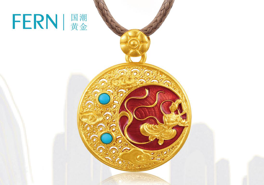 设计师从敦煌艺术的绝美中寻找灵感,带来2021年的第一个新品——福运·敦煌系列,以敦煌文化中的“九色鹿、宝相花、飞天”等经典元素作为设计基础,并与当代时尚融合,运用珐琅彩工艺点睛上色,成就国潮新风尚,带来吉祥寓意与美学魅力兼具的黄金饰品。