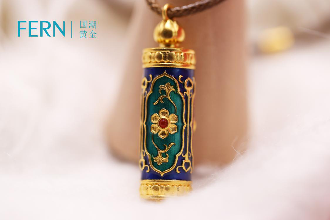 整个系列采用古法匠心工艺,每件饰品都历经搂胎、锤揲、修金、錾刻、花丝、镶嵌六大古法工艺,再增加高温珐琅工艺画龙点睛,800°高温炼制,历久弥新不褪色,再现敦煌华彩。