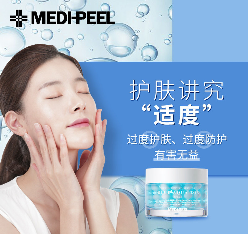 美蒂菲MEDI-PEEL蓝色海洋补水面霜,具有化妆水、乳液、美容液、面霜、面膜五种功能。对于快节奏的人来说,这是一个极佳的选择,玻尿酸+肉毒杆菌+虾青素+蓝花组合,能深层渗透角质层,超强补水保湿能力,使肌肤持久水润光泽。同时促进弹力细胞生长,恢复肌肤弹性。也可以睡前厚涂一层作为晚间面膜使用,让肌肤水灵灵的有活力,而且性价比也很高。整体配方简洁务实,对修复皮脂膜有很好的功效,敏感肌妹子使用也十分安全,肌肤干燥脆弱、皮薄有红血丝的人群一定要试试这款乳霜产品。干性皮肤一年四季都可以用,对柔软皮肤有很好的改善,吸收后肤感也很好,百用不腻的不二之选!补水和保湿是不一样,这点要尤其提醒油性肌肤,要根据季节的变化使用不同的保湿产品,要不然肌肤水分流失,更会刺激出油长痘。