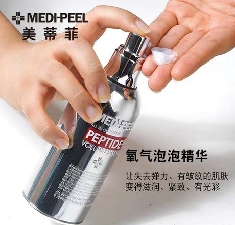 美蒂菲MEDI-PEEL缩氨酸9丰盈精华,精华液的质地是不常见的泡沫状,能让护肤品里的有效成分更快的深入到皮肤内部并发挥作用。为了应用好泡沫和碳酸的结合,美蒂菲MEDI-PEEL还研究了专利技术将微米化技术通过增溶二氧化碳和耐压密闭罐来实现。一抹即化,变成轻薄舒爽的乳状,吸收感很好,用后皮肤湿润弹嫩柔软。提醒下大家,因为是液压罐的特殊设计,按压会连续性出料,所以不要按到底,会一下挤出太多,轻轻按压取适量即可。美蒂菲MEDI-PEEL缩氨酸9丰盈精华延展性很棒,一点就够涂抹到全脸,因为碳酸粒子和泡沫机制,吸收感也很不错,油皮会很爱的那种,尤其是吸收后皮肤仍然可以保持湿润弹嫩柔软,同时不会清爽到让你觉得什么都没涂一样,使用感确实是很惊艳。美蒂菲MEDI-PEEL缩氨酸9丰盈精华让肌肤能够更好地抵御外界环境的侵扰,真正“喝饱水。美蒂菲MEDI-PEEL缩氨酸9丰盈精华释放了相当于厚重的面霜或膏状的强力保湿能量,但实际的触感竟然如丝绸般轻薄,让每一次补水都成为一种享受。如今随着环境污染与气候多变的加剧,肌肤在严峻的外部因素影响下更容易流失水分,因此,在日常肌肤护理中,保湿补水至关重要,而慎重选用精准高效的保湿精华产品,能让肌肤达到事半功倍的补水效果,美蒂菲MEDI-PEEL缩氨酸9丰盈精华让你重焕健康光采,自信迎接新年。