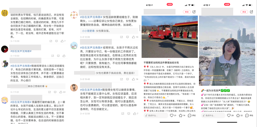 与此同时,龙角散在线上举行的#无惧偏见 自在发声#主题征集活动也吸引了超过500多位来自各行各业,不同年龄阶段的女性的深度参与。这里面有旅居海外多年的华人,有初出茅庐的大学毕业生,有性教育学者,单亲妈妈,有职场大拿,体制内员工,快送骑手,还有女主播和自媒体达人,她们的共同点是——都曾经遭遇过,或者目睹过“性别偏见”对女性的伤害,但通过自己的努力,勇敢的发声来打破这些偏见,逐步实现自己对于自己的期许。
