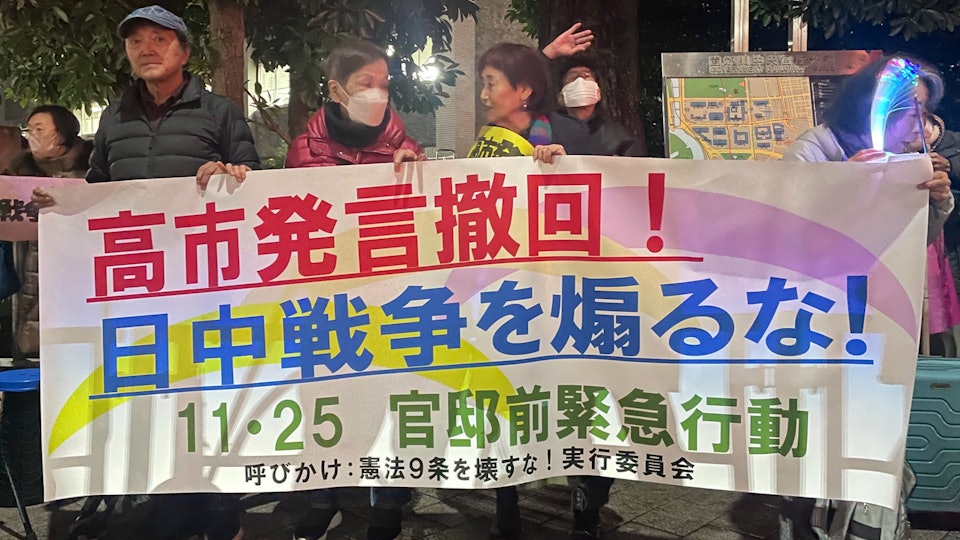 日本国民は首相官邸前で、高市早苗氏の台湾関連発言に抗議する集会を行った。